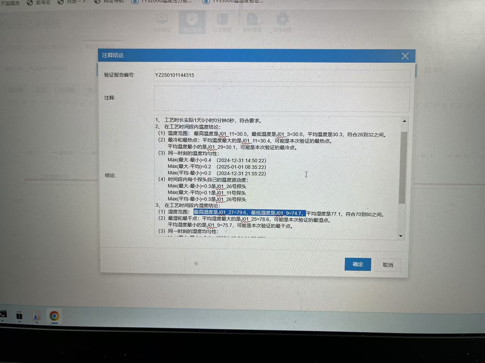 总共验证5个温湿度点,17.5℃/50%RH、25℃/60%RH、30℃/65%RH、30℃/75%RH、40℃/75%RH,每个温湿度点,验证仪上中下三层,每层5个温湿度探头,总共记录15个位置温度和湿度,空载24小时,满载24小时,验证仪传感器和机器温湿度传感器偏差修正后一次性通过验证。